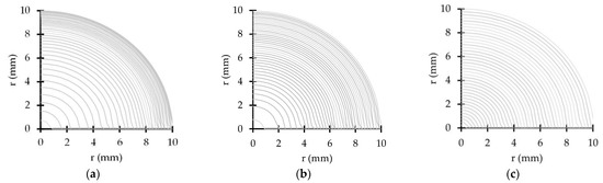 The radial mesh (or grid) generation is crucial for the accurate simulation of the flow, both in steady and unsteady conditions. A computer code was implemented to allow the definition of the three traditional radial meshes (Figure 2): (i) geometric sequence cylinders (GS); (ii) equal area cylinders (EAC); and (iii) equal thickness cylinders (ETC).
