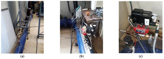 The system has a reservoir-pipe-valve configuration, with a rigidly supported straight copper pipe with an inner diameter, D, of 20 mm, wall thickness, e, of 0.001 m and a total length, L, of 15.2 m. A centrifugal pump with a hydro-pneumatic vessel is installed at the upstream end of the pipe to simulate a constant level reservoir. Two in-line ball valves are installed at the downstream end of the pipe: one valve, manually actuated, is used to control the flow rate and the other valve, pneumatically actuated, is used to generate the transient event. Different closure times are attained by varying the operating pressure of the pneumatic valve [36].