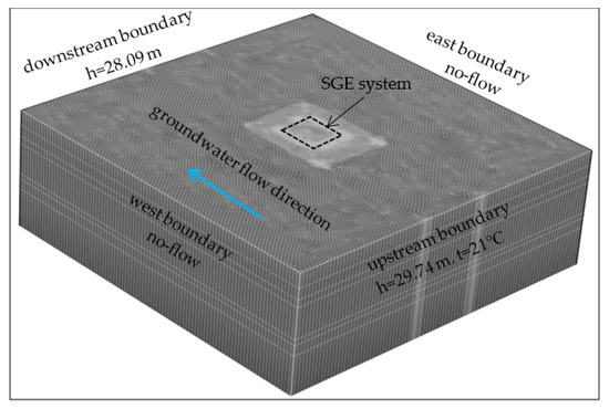 - Yanzhang, Z.H.O.U.; Zhifang, Z.H.O.U.; Rong, W.U. Simulation study of the stage-characteristics of groundwater thermal transport in aquifer medium for GWHP System. Hydrogeol. Eng. Geol. 2011, 38, 128–134. [Google Scholar]