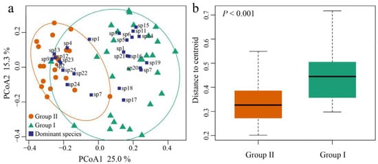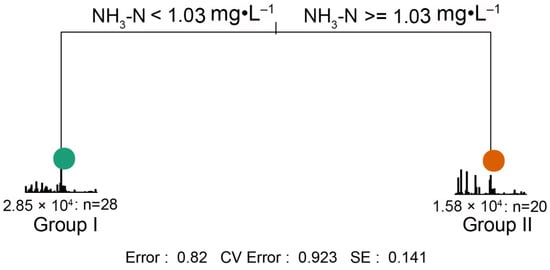| Beta Diversity | Group I (NH3-N < 1.03 mg·L−1) | Group II (NH3-N ≥ 1.03 mg·L−1) |
