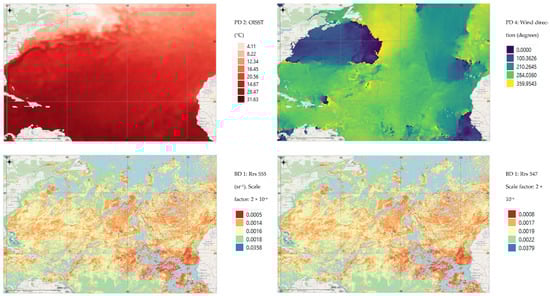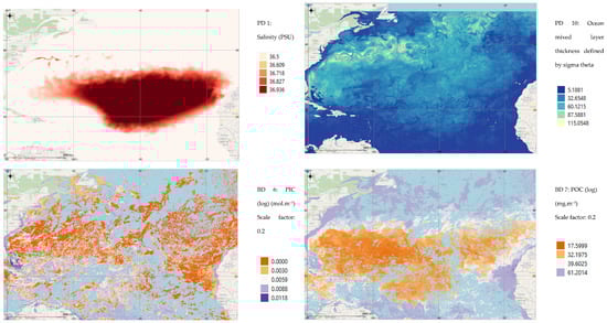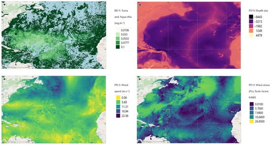 Co-temporal and co-located met-ocean parameters that are considered to be somehow connected with the ocean carbonate system were derived from independent sources using earth observation satellite remote sensing (BD 1–7; PD 1–5), model reanalyses (PD 10), and empirical algorithms (PD 6–8) (Table 2). The GEBCO bathymetry (PD 9) was derived from a mix of ship track soundings, with the interpolation between soundings guided by satellite-derived gravity data.
