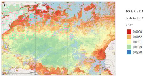 Rrs 443/488BD 4MODIS (Aqua, Terra)0.042°, daily, global[24,25]