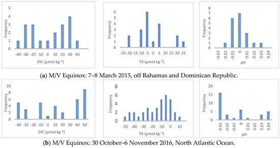 Figure 7. Histogram reporting the distribution of the mean bias values for DIC, TA, and pH.