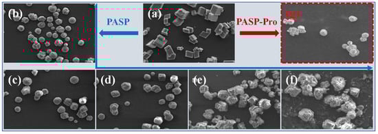 The effect of PASP-Pro on the morphology of calcium carbonate is similar to PASP, and spherical vaterite particles (Figure 10g) can also be observed, which is consistent with the XRD characterization results.