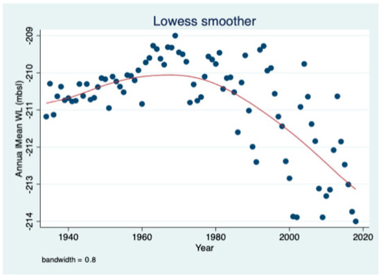 Results given in Figure 2 indicate a WL increase during the period of 1934–1970 with a continuous decline later on.