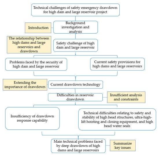With the development of a 300 m high dam and large reservoir construction, the emergency drawdown capacity of cascade reservoirs, especially high dams, has become a hot issue of concern to all sectors of society while giving play to huge comprehensive benefits. Based on a thorough investigation of the current situation of drawdown facilities for high dams and large reservoirs with a height of 200 m or more in the world, this paper finds that drawdown facilities currently face difficulties such as insufficient drawdown capacity, poor safety and stability of high head structures, extremely high lift hoisting equipment, and high difficulty in high head water seal technology. It is pointed out that the key technologies that need to be urgently addressed for a deep drawdown of high dams and large reservoirs are the pressure-bearing capacity of gates and the capacity limit of hoists. As a result, the elevation of the bottom tunnel of the drawdown building cannot be arranged and the orifice is limited, and the drawdown depth and discharge capacity are limited.