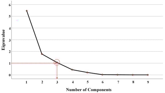 Principal component analysis method for factor prediction. The red arrow indicates the number of components corresponding to the Eigenvalue equal to 1.