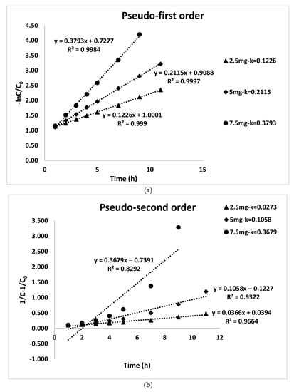 (a) Pseudo-first-order kinetic model. (b) Pseudo-second-order kinetic model.