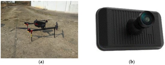 The Feima D2000 UAV system (Shenzhen Feima Robotics Technology Co., Ltd., Shenzhen, China), which was used for image acquisition in this study, is a light, long-endurance, multi-rotor UAV system that can simultaneously meet the requirements of high-precision mapping, remote sensing, and video shooting (Figure 3a). An aerial survey module, tilt module, visible video module, thermal infrared video module, and thermal infrared remote-sensing module could optionally be carried and could obtain diversified data. The standard takeoff weight of the system is 2.8 kg, the standard load is 200 g, and the endurance is 74 min []. The whole system can be integrated into a work box after modular decomposition, which is convenient for carrying and transportation. Feima D2000 is equipped with high-precision differential GNSS card office, and the network RTK, PPK, and their fusion solution services are provided as standard []. This system is competent for 1:500 mapping without control points, supports high-precision POS-assisted aerial triangulation, and realizes phase-control-free application. The image size of the SONY a-6000 digital camera (Sony Group Corporation, Tokyo, Japan) equipped with Feima D2000 aerial survey system is 6000 × 4000 pixels and the lens focal length is 25 mm (Figure 3b) [].