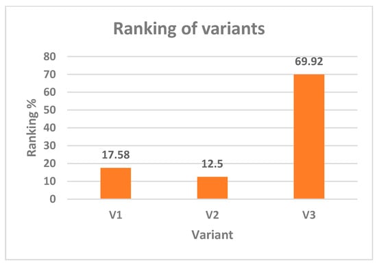 It can be concluded, based on the obtained results, that the AHP method suggests variant 3 as the best in all considered cases or ranking. This is a consequence of the “crossing” of the ranking of variants according to the physical characteristics of the considered parameters, independent of the ranking of the parameters according to the decision-maker’s preferences. Based on the results presented above, it is obvious that Variant 3 is ahead of Variant 1 and Variant 2 according to all three selected criteria.