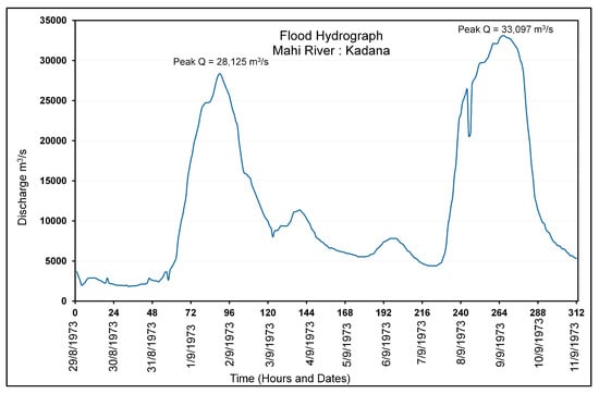 Flood hydrograph of the Mahi River at Kadana (1973 flood). Data source—More [].