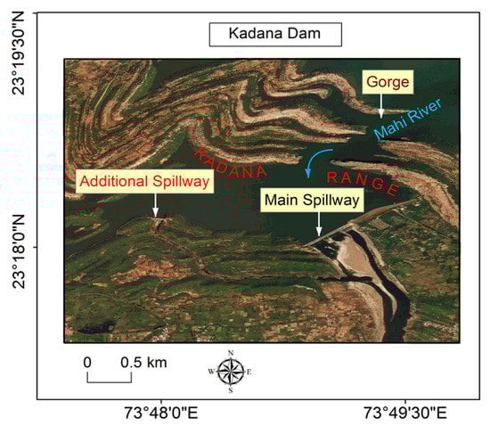 - Kulkarni, Y.N.; Shah, C.S. Strengthening foundation of Kadana Dam. In Proceedings of the International Society for Rock Mechanics and Rock Engineering (ISRM) International Symposium, Tokyo, Japan, 21–24 September 1981. [Google Scholar]