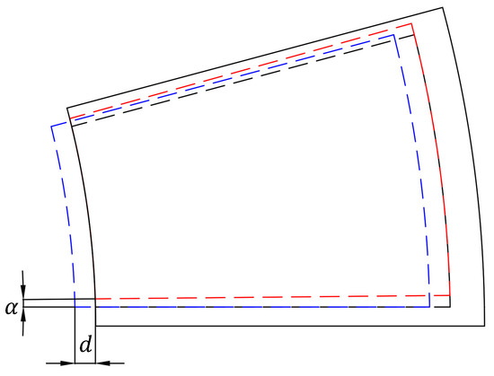 To analyze the influence of thrust bearing installation deviation on oil film flow performance, radial and circumferential installation models are established. The radial installation deviation is formed by offsetting the thrust pad by a distance along the radius direction. The circumferential deviation is formed by rotating the pad counter-clockwise at an angle around the axis, as shown in Figure 9.