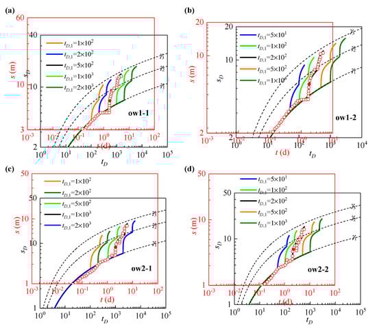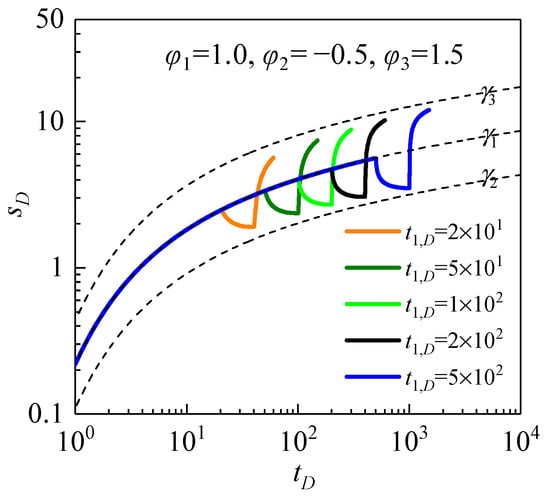 In field applications, ti and Qi are determined using piecewise-constant approximations of recorded variable pumping rates. Therefore, Equation (5) shows that sD is a function of tD, and is only influenced by different values of t1,D. Taking the logarithms of both sides of tD and sD in Equation (3) results in