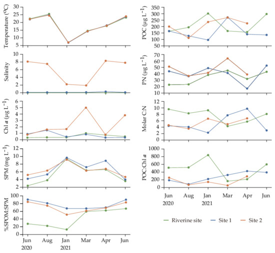 - Liénart, C.; Savoye, N.; Bozec, Y.; Breton, E.; Conan, P.; David, V.; Feunteun, E.; Grangeré, K.; Kerhervé, P.; Lebreton, B.; et al. Dynamics of particulate organic matter composition in coastal systems: A spatio-temporal study at multi-systems scale. Prog. Oceanogr. 2017, 156, 221–239. [Google Scholar] [CrossRef]