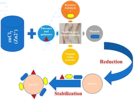 Schematic diagram for synthesis of ZnONPs using scallion peel extract.
