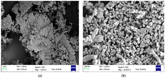 From Figure 5a, FESEM of ZnONPs, it is clearly visible that the particles are spherical and irregularly rod-shaped. Since no capping agent or surfactant was used, spherical particles are showing aggregation and their size is relatively increased. Figure 3a shows a FESEM image of ZnONPs at 1 micron where particle morphology is not differentiable. Moreover, particles are showing aggregation. Figure 5b shows the FESEM micrograph of ZnONPs at 200 nm resolution, where there are two types of particles: the majority of the particles are spherical shaped whose size is 40–100 nm, while a few of them are present as rod-shaped whose size is above 200 nm. Fakhari and team also obtained spherical to bullet-shaped particles which were synthesized by zinc acetate and zinc nitrate, respectively, which were showing aggregation. The investigators concluded that the agglomeration is due to the polarity and electrostatic attraction of ZnONPs. In addition to this, Madan and their team also obtained similar observations [13].