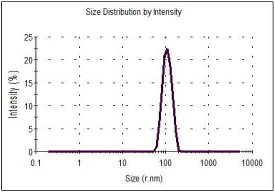 Particle size distribution of ZnONPs synthesized by scallion’s peel extract.