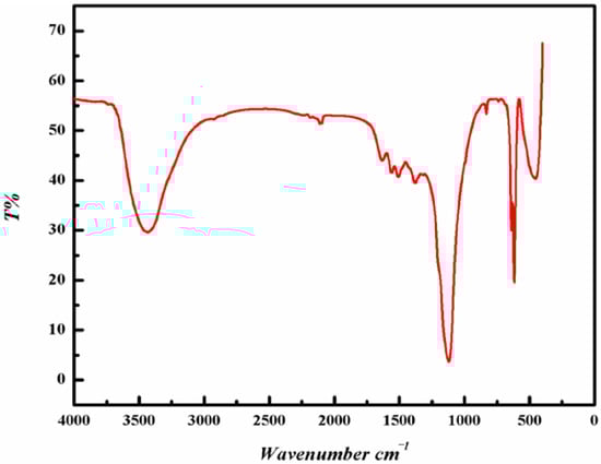 FTIR analysis was completed to find out the active bioactive compounds in the scallion’s peel. Typical FTIR spectra of synthesized ZnONPs are shown in Figure 7, which have characteristic bands of ZnONPs at 510.3, 603.9, and 790.1 cm−1. The bands from 400–800 are attributed to the weak and strong stretching vibrations of the Zn-O bond. The presence of bands in this region also confirms the formation of ZnONPs. Iqbal and their team also obtained a band at 498.25 cm−1, which was attributed to the Zn-O stretching vibrations [12]. A band obtained at 1122.5 cm−1 is attributed to the C–O stretching and also due to the amide group in the synthesized ZnONPs, which was also obtained by Iqbal and their team at 1106.12 cm−1. This particular group might be coming from the peel of scallions. In addition to this, a deep band at 1625.7 cm−1 is attributed to the C=O stretching. Moreover, this particular band could also be due to the (-OH) group in the ZnONPs. A small band near 2500 cm−1 is due to the atmospheric CO2 adsorbed on the ZnONPs. A broad band at 3420.1 cm−1 is attributed to the (-OH) group present in the ZnONPs. The results obtained here were in close resemblance with earlier results obtained by Modi and Fulekar [38]. A team led by Rajendran and Belely have also obtained similar results for the chemically synthesized and green route synthesized, respectively [44,49]. Iqbal and their team also obtained a band at 3480.15 cm−1, which was due to the alcohols and phenols of OH stretching [12].