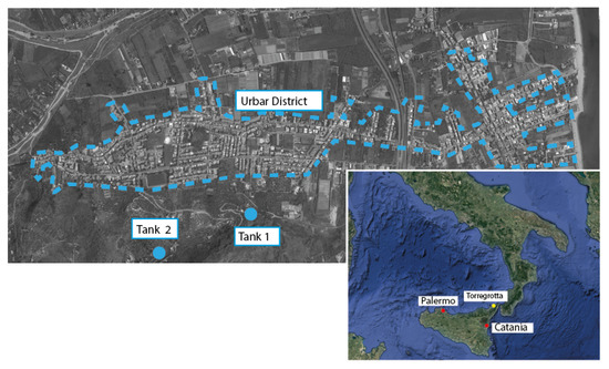 - Risposta a Domanda Consiliare, III Area Territorio ed Ambiente, “Appunti del Fontaniere” 2019, in Italian. Available online: http://www.comune.torregrotta.me.it (accessed on 30 September 2022).