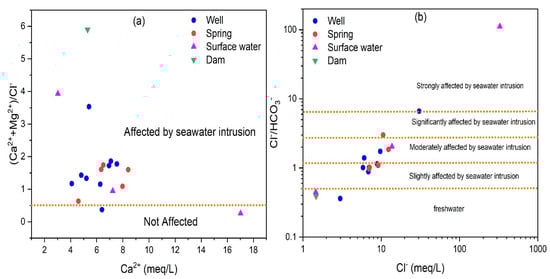 - Revelle, R. Criteria for recognition of the sea water in ground-waters. Trans. Am. Geophys. Union 1941, 22, 593–597. [Google Scholar] [CrossRef]