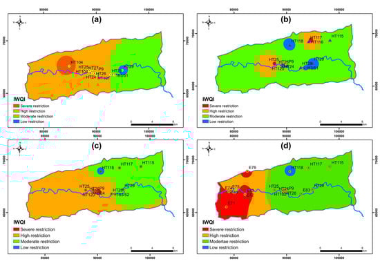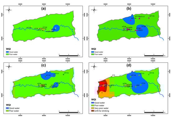 Finally, the IWQI was determined using the following relationship (Equation (6)):