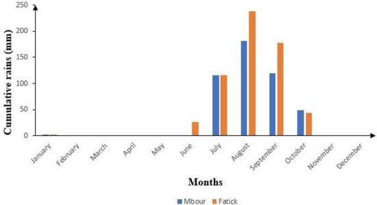 Average monthly rainfall from 1991 to 2020 at the Mbour and Fatick station.