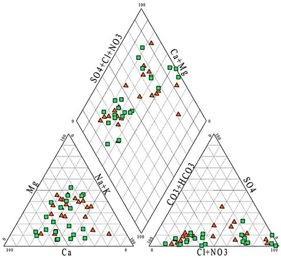- Piper, A.M. A graphical procedure in the geochemical interpretation of water analysis. Trans. Am. Geophys. Union 1944, 25, 914–928. [Google Scholar] [CrossRef]