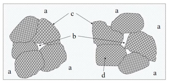 Schematic presentation of water in sewage sludge. a—free water; b—interstitial water; c—surface water; d—intracellular water.