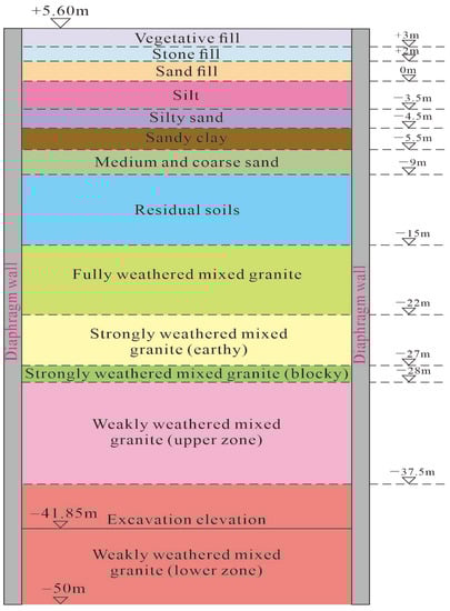 | ⑥-2A | Intense weathered mixed granite (soil) | −87.76~−1.86 | 0.4~46.8 | 8.12 | ||