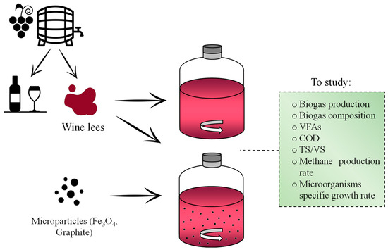 Study proposal for the anaerobic digestion process using wine lees as substrate with and without the addition of different microparticles.