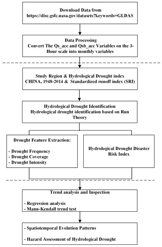 Based on spatiotemporal big data, this study studied the spatiotemporal evolution patterns of hydrological drought and the hazard assessment of hydrological drought in China from 1948 to 2014. Figure 1 shows the framework for this approach.