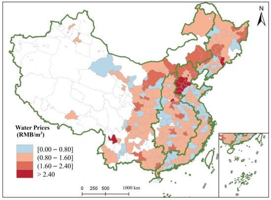 An Increasing Block Rate (IBR) price structure is used in China, where the first block water price is principally based on compensation cost levels and considers the current period production capacity utilization [26]. Although these policies have been somewhat effective in fulfilling their objectives, challenges persist in their implementation and compliance [27]. In China, domestic water prices are independently set by pricing regulators in each city, leading to significant disparities in water prices across various prefecture-level cities. The factors contributing to these differences have not been extensively explored.