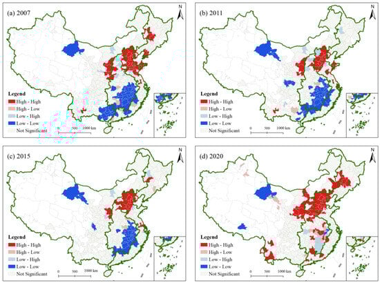 LISA agglomeration of China’s urban domestic water prices from 2007 to 2020.