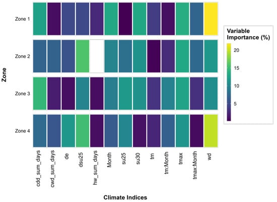 | Consecutive dry days (days) | cdd_sum_days | An episode lasting at least five days with a precipitation amount of less than 1 mm [23,26] |