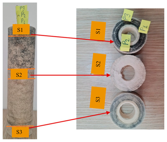 Figure 2. Sample preparation and sampling: P—sample; S—section.
