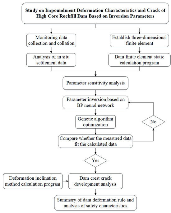Deformation stability and control are key technical issues in the construction of high rockfill dams [1,2]. There are many examples of large deformation, uneven settlement, leakage, cracks, and other problems caused by improper deformation control in the existing high rockfill dams in China, and some even directly cause dam failures [3,4]. At present, there are a large number of high earth and rock dams under construction and preparation in the western region of China [5]. With the increase in the number and magnitude of high rockfill dams, it is increasingly important to analyze stress deformation and cracks to ensure the safe and stable operation of the dam. Obtaining correct and reliable dam material parameters is the foundation for calculation and analysis [6]. The stress deformation analysis of earth-rock dams based on inversion parameters is of great significance for predicting the potential adverse deformation and safety risks that may occur in a dam [7,8].