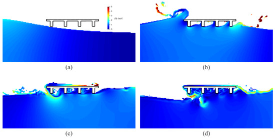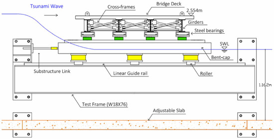 Until recently, almost all the physical experiments and numerical models related to tsunami-induced forces considered only rigid structures and ignored the dynamic responses of the structures. However, the dynamic responses of the structures and the interactions with the surrounding flow field may not be negligible as the structures become flexible. Recently a few studies have started to consider structural dynamics. For example, Istrati and Buckle [28] used a commercially available multiphysics code to simulate the fluid-structure dynamic interactions for a bridge superstructure model. They found that the flexibility of the bridge significantly alters the induced tsunami loading as well as the bridge connection forces. Though their numerical results were not validated with experimental data, their works demonstrated the importance of considering the dynamic response of structures subjected to extreme hydrodynamic loading and opened a discussion for further research on understanding the underlying complex physics. On the other side, Abraham [29] used dam-break experiments to study the interaction of a flexible plate subjected to extreme wave impact loading, and Istrati [9] carried out experiments to analyze the fluid-structure interactions of tsunami waves on large-scale (1:5) bridge models. The experimental results suggest that the dynamic response of structures affects the reaction forces in the structures.