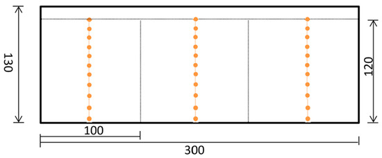 The temperature field monitoring primarily focuses on monitoring the ambient temperature within the model test box and the temperature of the soil body contained within the test box. The ambient temperature plays a crucial role in influencing the temperature of the soil. To effectively monitor the changes in ambient temperature, it is necessary to identify a temperature uniformity point where temperature sensors can be strategically placed above the indoor model. In terms of soil temperature monitoring, a total of 33 monitoring points were established within the model test. These monitoring points were divided into three groups: points 1 to 11 were designated for monitoring the temperature of the first soil body, points 12 to 22 for the second soil body, and points 22 to 32 for the third soil body. Within the depth range of 0 to 80 cm, temperature sensors were arranged at intervals of 10 cm, while within the depth range of 80 to 120 cm, sensors were placed at intervals of 20 cm. The specific arrangement of temperature sensors can be observed in Figure 4.
