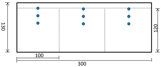 The monitoring of layered water content serves as an indicator of the water migration within the soil body during the freeze–thaw cycle. This test is conducted both prior to the commencement and after the completion of the experiment. Before the test begins and after it concludes, water observations are conducted on different sections of the soil body. The primary method involves extracting samples at 10 cm intervals from each test hole to observe the moisture content at various layers. As the sampling process involves creating boreholes, it is necessary to refill the boreholes with residual soil to prevent any interference with the temperature field observations. Additionally, three moisture sensors were installed in the surface layer of each soil for comparative purposes. Within the depth range of 0 to 40 cm, one sensor was placed at intervals of 20 cm. The moisture sensor arrangement is shown in Figure 5.