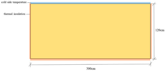 The computational model depicted in Figure 9 exhibits the same dimensions as the model test soil in terms of length and height. The boundary conditions and initial conditions employed in the model are consistent with those used in the test. The horizontal displacements on both sides of the soil sample and the vertical displacements at the bottom boundary are constrained. The thermodynamic parameters of the soil samples utilized in this calculation were obtained from relevant literature sources [41,42]. Similarly, the hydrodynamic parameters were obtained from literature references [41,42]. Table 2 presents the thermodynamic and hydromechanical parameters necessary for analyzing the soil hydrothermal coupling model. The COMSOL platform was employed for the secondary development of the derived hydrothermal coupling model, and numerical simulations were conducted to assess the model’s performance under various working conditions.
