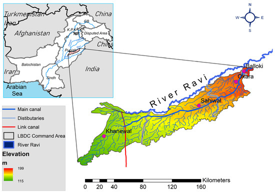 - Shafeeque, M.; Hafeez, M.; Sarwar, A.; Arshad, A.; Khurshid, T.; Asim, M.I.; Ali, S.; Dilawar, A. Quantifying future water-saving potential under climate change and groundwater recharge scenarios in Lower Chenab Canal, Indus River Basin. Theor. Appl. Climatol. 2023, 1–18. [Google Scholar] [CrossRef]