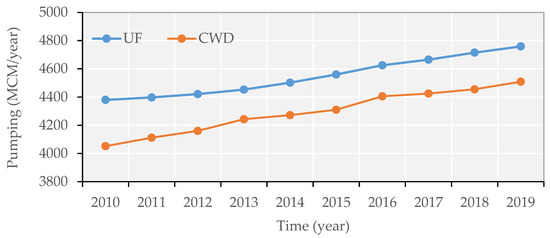 - Marston, L.; Konar, M.; Cai, X.; Troy, T.J. Virtual groundwater transfers from overexploited aquifers in the United States. Proc. Natl. Acad. Sci. USA 2015, 112, 8561–8566. [Google Scholar] [CrossRef]