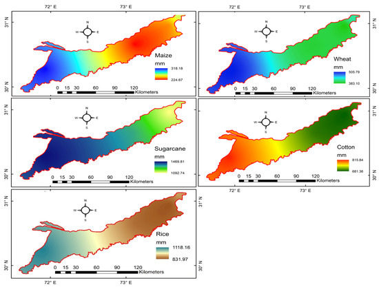 - Hussain, S.; Mubeen, M.; Nasim, W.; Fahad, S.; Ali, M.; Ehsan, M.A.; Raza, A. Investigation of Irrigation Water Requirement and Evapotranspiration for Water Resource Management in Southern Punjab, Pakistan. Sustainability 2023, 15, 1768. [Google Scholar] [CrossRef]