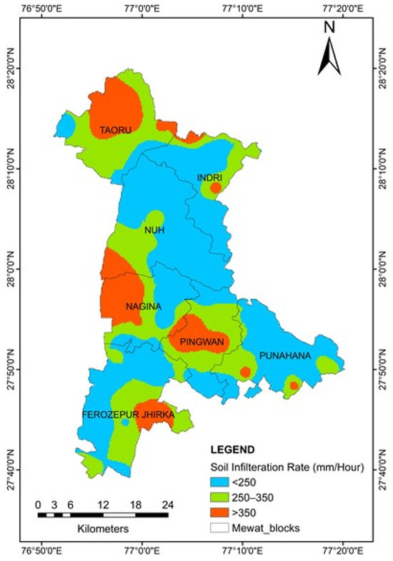 Soil infiltration map showing the final rate of infiltration, Mewat, Haryana.