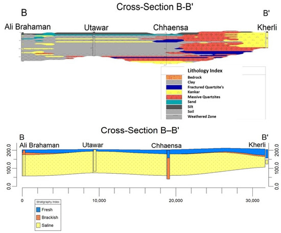 Two-dimensional lithological section along Ali Brahaman and Kherli.