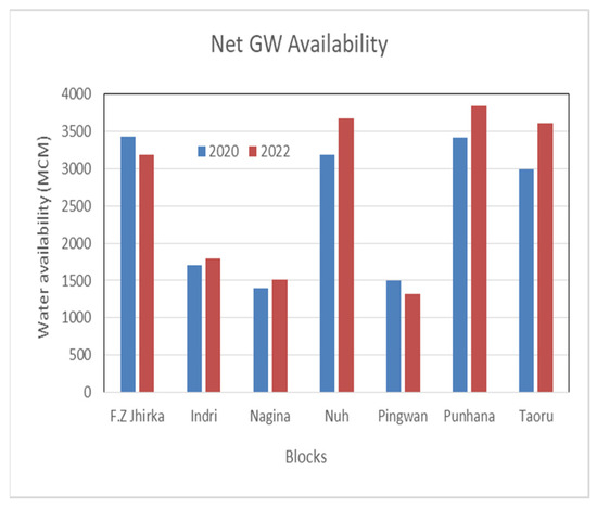 Comparison of net GW availability in 2020 vs. 2022 in Mewat, Haryana.