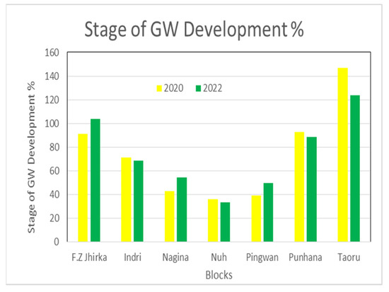 Comparison of stage of GW development in 2020 vs. 2022 in Mewat, Haryana.
