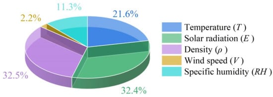 The four atmospheric forcing factors mentioned above, along with snow density, responded to 83.97 percent of the variables that determine how much the snow crystals’ necks vary, indicating that they may be the main factors influencing the neck area. Further factor analysis was carried out on Equations (3) and (4) to determine the normalized principal component score coefficients based on the coefficient analyses of the mean ambient temperature (T), cumulative solar radiation (E), snow density (ρ), wind speed (V) and specific humidity (RH), as shown in Figure 12. From Figure 12, it can be seen that the three factors with the highest proportion are density, solar radiation, and temperature. The specific humidity plays a supplementary role in explaining the changes in neck area, with wind speed contributing the lowest, at only 2.2%, and the neck area is not sensitive to its influence. Microstructure, temperature, and sedimentation all have intricate feedback relationships with one another []. Four different forms of atmospheric forcing changes affect the direction and rate of internal microstructural changes. The neck area represents microstructural changes that are intrinsic to changes in the internal physical properties of the snowpack. For instance, pressure sintering causes the growth of snow crystal necks and bonds [], and the growth of the neck region boosts the thermal conductivity and heat transmission of snow while allowing the bonding strength between grains to grow and the settling rate to decrease. Since there is less of a temperature difference in the snow’s vertical direction because of the enhanced heat transfer, there is less vapor flow, which prevents the growth of the snow neck. Additionally, when pressure sintering slows due to the decrease in settling, neck growth will also slow. Then, the aforementioned processes can be reversed or cycled in response to changes in the ambient temperature, with snow layer thermal anisotropy being a key factor in temperature gradient metamorphism []. The solar radiation directly heats the snow layer to affect the metamorphism of snow cover, and its contribution cannot be ignored. Humidity and wind speed also supplement the changes in the neck. Environmental humidity, as an important factor in the variation of moisture content in snow, plays a role in the growth of snow crystals. The wind speed directly affects the particle morphology and bonding mode on the top snow surface, leading to changes in transmittance and thermal conductivity, affecting the microstructure of surface snow and altering the energy input of the snow sample from the outside.