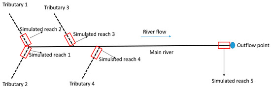 Fishes were considered as the ecological index to simulate habitats in the river network. Observing and sampling of the fishes in their actual habitats might be a challenging issue in the ecological studies. Sampling methods have been categorized in two classes including direct and indirect methods. Direct methods directly observe the fishes in their actual habitats. Video telemetry is one of the known direct methods that has been highlighted in previous works [29]. However, some limitations such as high turbidity might be a hindrance when utilizing direct methods in some case studies. Thus, indirect methods have been addressed as well. The most important and well-known indirect method is electrofishing, which is able to shock fishes in a limited habitat area, for example, one square meter, as an observation point. Biometry might be the next stage in fish observation studies using the electrofishing method. There are some significant advantages for using the electrofishing method including reasonable cost and usability in turbid water. The main disadvantage of this method is its probability for perishing fish. We, however, used a low voltage to reduce perishing fish. Velocity and depth were measured in the microhabitats by the propeller. More details regarding the measurement of depth and velocity in the microhabitats have been highlighted in the previous research works [29]. Another stage of field studies was to survey the selected river reaches for simulating hydraulic habitats. Surveying river cross sections is a prerequisite for hydraulic habitat simulation. A known method was applied for surveying cross sections. More details have been highlighted in the previous research works [30].